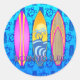 Pink Retro Born To Surf. 3 vintage style surfboards with the message Born To Surf. Ocean blue background with Hawaiian Honu Sea Turtles and Hawaiian Tiki Masks pattern.