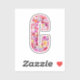 Pink Botanical Monogram Floral Letter C Initial Sticker