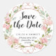 Chic round return address label to put on the back of your Save the Date envelope. It features a rustic, Boho pink floral botanical wreath on a rose gold glitter frame. Save the Date is written in a large flowing script. Your names and address are written in a classic combination of upright and italics text. Use as an envelope seal on the back. This is part of the Rose Gold collection that contains all the DIY templates you need to create a beautiful and affordable wedding stationery suite. You should see a link to it on this page. If you don't see the link or you need help with an item, please contact me.