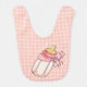 A bib with a pink baby bottle.