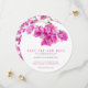 Simple bougainvillea botanical art in bright purple, pink and white square wedding round save the new date card. Edit this new rescheduled save the date card with your own names and wedding date. Other matching items are available. Original watercolor floral hand painting and design by Sarah Trett for www.mylittleedenweddings.com