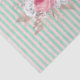 Pretty and feminine tissue paper features large bouquet with pink roses and other florals and leaves on background of distressed mint and pale pink stripes. Can be used for gift wrap, decoupage and more.