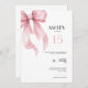 Make your teenager's special day even more memorable with our 15th birthday invitation featuring a beautiful pink bow design. This elegant and classy invitation is an editable template that you can personalize easily, making it perfect for a 15-year-old girl’s celebration party. With its minimalist style and charming watercolor coquette element, this invitation is not only visually appealing but also practical, allowing you to send a stylish pink ribbon invite with just a few clicks. Choose our printable card to ensure that every detail stands out as you invite friends and family to join in the festivities. Celebrate her journey into teenage years with a stunning invite.