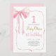 Pink Bow 1st Birthday Invitation