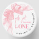 This mini candle features a sticker on the lid with a soft watercolor bow in the top left corner for a sweet, stylish touch. The phrase “Girls Just Wanna Be ONE” is centered in pink, using a mix of playful script and classic serif fonts for a fun, girly look. The birthday child’s name and age curve gracefully around the edge in a gray serif font, completing the design with a polished, personalized feel.