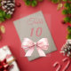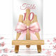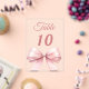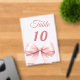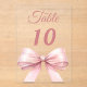 Personalize and your table numbers one by one. A clear background decorated with a large pink colored bow.