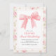 Pink Bow and Roses Coquette 1st birthday Invitation