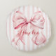 Pink Bow and Stripes Personalized Round Pillow