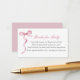 A book request insert card for baby shower. Featuring a watercolor pink bow with poem: "ONE SMALL REQUEST, WE HOPE NOT TOO HARD PLEASE BRING A BOOK INSTEAD OF A CARD THEY'LL CHERISH THE BOOK, WELL LOVED OR BRAND NEW PLEASE SIGN THE INSIDE WITH A MESSAGE FROM YOU!"