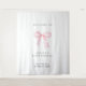 Celebrate the upcoming arrival of a sweet baby girl with this timeless and elegant baby shower backdrop tapestry. Featuring a soft pink bow and minimal typography, this design blends classic charm with modern minimalism. The clean white background allows the delicate details to shine, creating a refined look that’s perfect for a traditional, chic, or feminine baby shower theme.