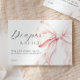 Baby shower diaper raffle enclosure card that features a pink bow and pink background.