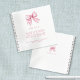 PInk Bow Baby Shower Guest Book. A pretty pink gingham bow is above modern writing which you can easily personalise for your baby girl shower.