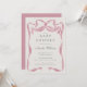 Plain white envelopes are included with paper invitations and will come to fit the invitation size you select. If you don’t need the envelopes, you may choose to not receive them by selecting the dropdown below "Envelopes" and choosing "None." If you’d like to have a design on your envelopes, you can browse all of these available envelopes to find the design that complements your Pink Bow Baby Shower Invitation.
