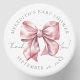 This adorable and elegant baby shower party favor candle features a soft watercolor pink bow, adding a sweet and feminine touch. The design includes the mother’s name and Baby Shower at the top, with the event date at the bottom. In the center, next to the delicate pink bow, Thank You! is written in elegant script.