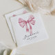 Cute baby shower party napkins featuring a sweet pink watercolor bow, and a text template that is easy to personalize.