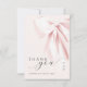 Thank your guests with this Pink Bow Baby Shower Thank You Card, featuring a charming blush pink bow and romantic script. This card allows you to simply express your gratitude with your name and the date of the event.