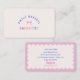 This elegant business card is perfect for babysitters looking to showcase their services. The front features an adorable pink bow graphic. The "BABYSITTER" text is editable—you can change the color to match your style or remove it entirely and add your profession using the "Chewy" font, which complements the design perfectly. The card is designed in soft pastel colors, all of which are fully customizable to suit your needs.