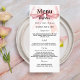 Birthday party menu card. Personalize and add a name, age, date and the menu. A white background and a large pink bow.