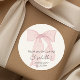 Make your party favors extra special with these chic pink bow Classic Round stickers! Designed with a soft organza ribbon and timeless pink accents, these stickers are ideal for all ages and birthday themes—from a baby’s first birthday to an elegant adult gathering. Easily customize the text to match your event and give your guests a thoughtful and stylish takeaway!
