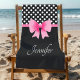 Pink Bow Black And White Polka Dots Name Beach Towel