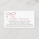A book request insert card for baby shower. Featuring a pretty pink bow with poem: "ONE SMALL REQUEST, WE HOPE NOT TOO HARD PLEASE BRING A BOOK INSTEAD OF A CARD THEY'LL CHERISH THE BOOK, WELL LOVED OR BRAND NEW PLEASE SIGN THE INSIDE WITH A MESSAGE FROM YOU!"