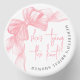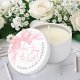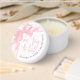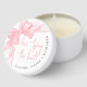 This mini candle features a sticker on the lid with a soft watercolor bow in the top left corner for a sweet, stylish touch. The phrase “She’s Tying The Knot” is centered in pink script, creating a romantic and feminine look. The bride’s name and shower date curve gracefully around the edge in a gray serif font, completing the design with a polished, personalized feel.