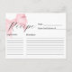 Pink Bow Bridal Shower Recipe Card