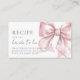 Pink Bow Bridal Shower Recipe Enclosure Card