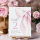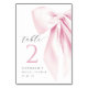 Add a touch of elegance to your bridal shower tables with this chic pink bow table card. Featuring romantic handwritten script, soft blush tones, and a sophisticated coquette design, this card is perfect for table numbers, place settings, or labeling special areas at your event.