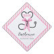 BSN Nurse Graduation Cap Topper. Pink Bow Registered Nurse Graduation Cap Topper. Sweet, trendy pink bow on medical stethoscope design and pink and white stripes. Personalize her graduation year and grad's name.