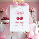 Greet guests with a stylish welcome sign featuring a pink bow and watercolor cherries. A perfect coquette touch for your baby shower entrance.
