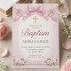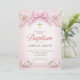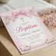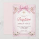 Pink Bow Cherub Baptism Floral Frame Invitation