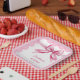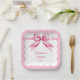 Pink bow coquette birthday party printed template paper plates personalized birthday tableware pink vintage lace border and a retro bow