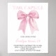 Create a cherished keepsake with our Pink Bow Coquette Birthday Time Capsule Sign! Designed with soft pastel hues, an elegant pink bow, and delicate ribbon detail, this sign embodies the timeless charm of the coquette aesthetic. Invite guests to leave heartfelt notes, wishes, and memories for the guest of honor to open in the future. Perfect for a stylish and sentimental birthday celebration, this sign adds a touch of elegance while making memories last a lifetime!