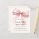A soft beige, cream colored background, decorated with a pink large bow. Personalize and add a name and party details.