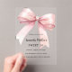 A clear, transparent background, decorated with a pink large bow. Personalize and add a name and party details.