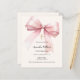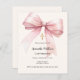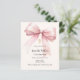 A soft beige, cream colored background, decorated with a pink large bow and a golden cross. Personalize and add a name and details details.