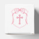 Pink Bow Crest Baptism Cube Favor Boxes