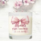 A white background, decorated with a pink bow. Personalize and add a name and date.