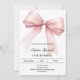 A white background, decorated with a pink large bow. Personalize and add a name and party details.