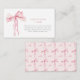 A stylish enclosure card that features a watercolor pink bow graphic in soft blush pink tones and a modern font. This pretty custom insert can easily be edited to suit your needs. The reverse side features a pink bow pattern and you can create the perfect invitation insert for a bow-themed baby shower, bridal shower, birthday or other special event. Pair with anything in the BLYTHE collection for a cohesive look.