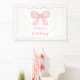 This adorable birthday banner features a hand painted pink watercolor bow with a squiggle border.