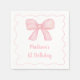 These cute birthday napkins feature a hand painted pink watercolor bow with a squiggle border.