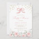Pink Bow Floral Blush Greenery Gold Baby Shower Invitation