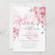 Plain white envelopes are included with paper invitations and will come to fit the invitation size you select. If you don’t need the envelopes, you may choose to not receive them by selecting the dropdown below "Envelopes" and choosing "None." If you’d like to have a design on your envelopes, you can browse all of these available envelopes to find the design that complements your Pink Bow Floral Bridal Shower Invitation.