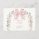 Pink Bow Floral Girl Baby Shower Raffle Diapper Enclosure Card
