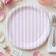 This pink bow baby shower coquette striped baby shower paper plate design features soft pink stripes, and creates a charming, preppy, and elegant look that feels sweet, stylish, and timeless. Created by Simply Farmhouse Press.