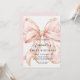 Easily personalize the name, date, time, and party details to match your event. Ideal for parents planning a pink bow themed birthday party, coquette bow party, or baby girl's first birthday celebration.