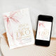 Pink bow girl's 2nd birthday invitation. Modern feminine design in blush pink and gold. Features trendy watercolor coquette bow, calligraphy heart script font and modern typography TWO. Perfect for an elegant style girl's second bday celebration. Personalize with your own details. Printed Zazzle invitations or instant download digital printable template.