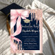 Pink Bow Glitter Grad Cap,Drips Photo Navy Blue Invitation
